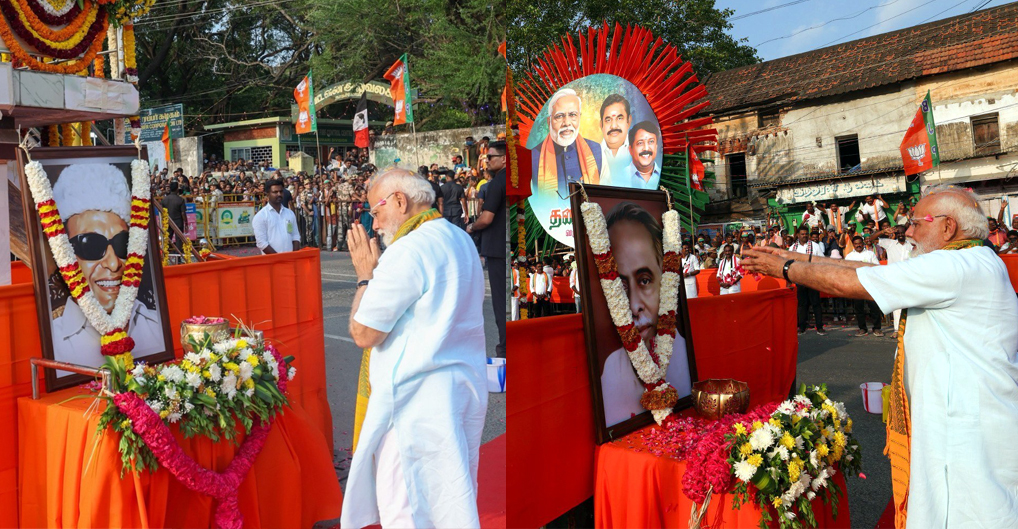 நாகர்கோவிலில் (ஏப்ரல் 15) நடைபெற்ற சாலைப்பேரணியின்போது தலைவர்கள் திருவுருவப்படத்திற்கு பிரதமர் நரேந்திர மோடி மலர் தூவி மரியாதை செலுத்தினார். கன்னியாகுமரி…..