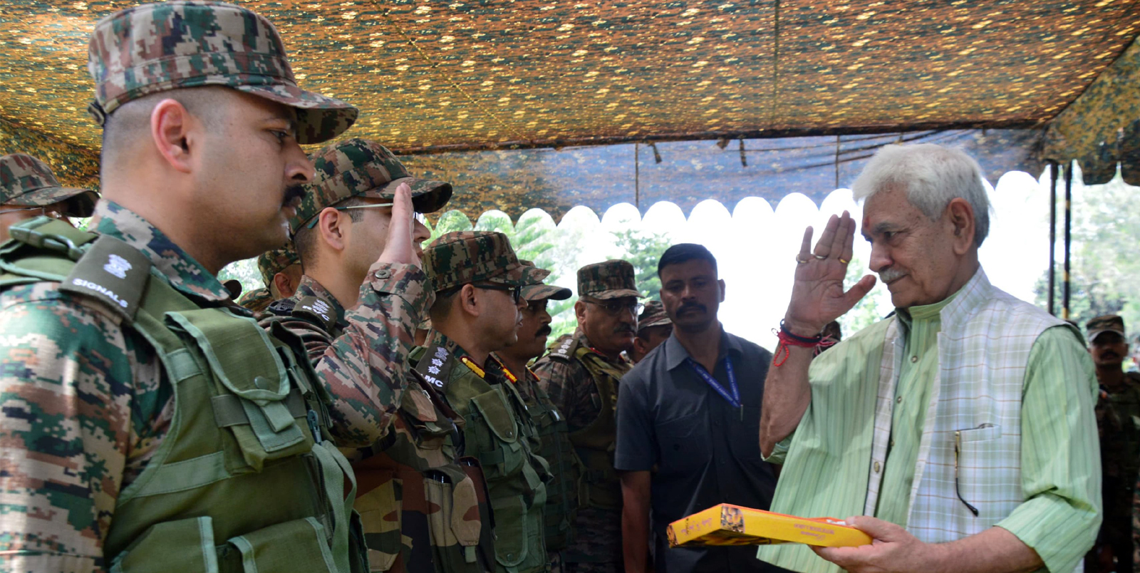 பாகிஸ்தானில் 9 பயங்கரவாத தளங்களை அழித்து எதிரியை மண்டியிட வைத்த உங்களின் துணிச்சலால் நாடு பெருமை கொள்கிறது என்று ஜம்மு காஷ்மீர் ஆளுநர் மனோஜ் சின்ஹா ராணுவத்தை