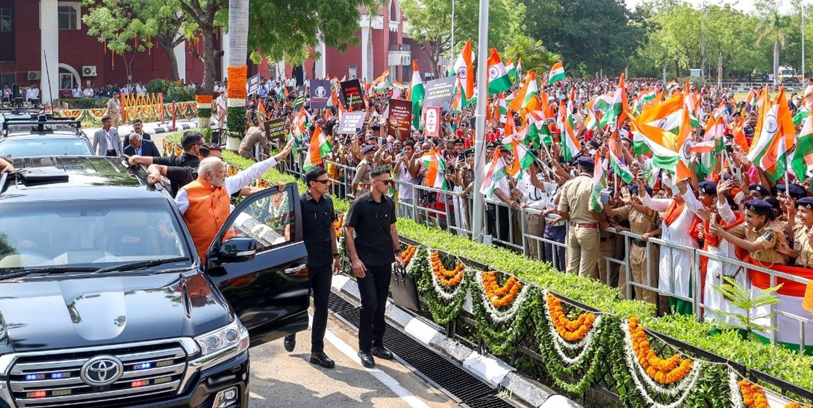 குஜராத் மாநிலம் வதோதராவில் நடந்த பேரணியில் பிரதமர் நரேந்திர மோடிக்கு ராணுவ கர்னல் அதிகாரியான சோபியா குரேஷியின் குடும்பத்தினர் பூக்கள் தூவி வரவேற்றது அனைவரையும் நெகிழ்ச்சி அடைய