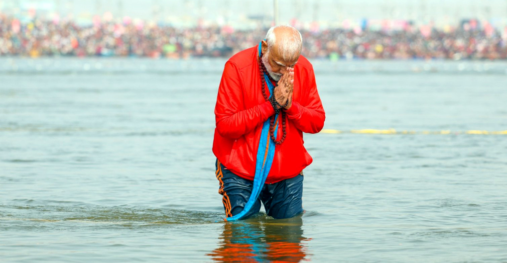 திரிவேணி சங்கமத்தில் புனித நீராடினார் பிரதமர் மோடி