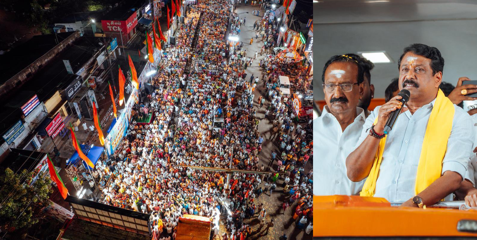 தவெக தலைவர் விஜய் கரூரில் நடைபெற்ற ஒரு பொதுக்கூட்டத்திற்கு போய் உள்ளார். விஜய் மைக்கை எடுத்த உடனே பேசுகிறார் பாட்டிலுக்கு 10 ரூபாய் என்று பாட்டு பாடுகிறார். பின்னர் கூட்ட நெரிசலில் 41 பேர் உயிரிழந்தனர். இங்க இருக்கின்ற பெண்களுக்கு பாட்டிலுக்கு பத்து ரூபாய் என்றால் தெரியாது, திமுக கூட்டம் கூடினால் அங்கு டாஸ்மாக் விற்பனை அதிகரிக்கும். 500 ரூபாய் கொடுத்து கூட்டத்தை கூட்டுவார்கள். ஆனால் தேசிய ஜனநாயக கூட்டணி அப்படி இல்லை. 5 பைசா கொடுக்காமல் அவ்வளவு பேர் நமக்காக கூடியுள்ளனர். நாங்கள் ஒன்றும் சினிமா நடிகர்கள் அல்ல, ஆனால் இந்த ஆட்சியின் மீது ஏற்பட்ட வெறுப்பு எங்கள் மீது பாசமாக மாறியுள்ளது.