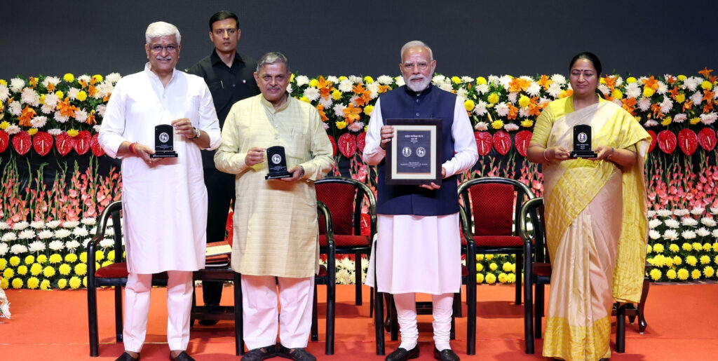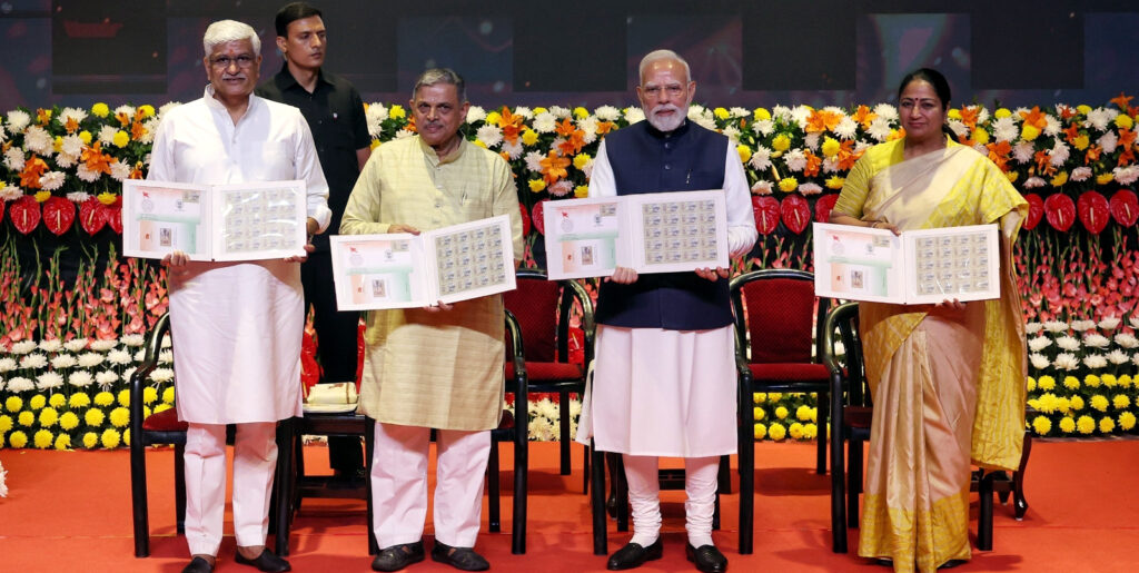 நண்பர்களே, சங்கத்தின் இந்த நூறாண்டுக்கால கௌரவமான பயணத்தின் நினைவாக, இன்று, பாரத அரசாங்கமானது, சிறப்பு அஞ்சல்தலை, மற்றும் நினைவு நாணயத்தை வெளியிட்டது. 100 ரூபாய் நாணயத்திலே, ஒருபுறத்திலே, தேசிய சின்னம் இருக்கிறது. இன்னொரு புறத்திலே, சிங்கத்தோடு கூட, வரத ஹஸ்தத்தோடு பாரதமாதாவின் சிறப்பான தோற்றம் உள்ளது. மேலும், சமர்ப்பண உணர்வோடு அவளை வணங்கும் ஸ்வயம்சேவகர்களைக் காண முடியும். பாரதநாட்டு நாணயத்திலே, பாரதமாதாவின் திருவுருவம், ஒருவேளை, சுதந்திர பாரதத்தின் வரலாற்றிலே, முதன்முறையாக நடந்தேறியிருக்கிறது. இந்த நாணயத்தின் மேலே, சங்கத்தின் ஞானவாக்கியமும் பொறிக்கப்பட்டிருக்கிறது. ராஷ்ட்ராய ஸ்வாஹா, இதம் ராஷ்ட்ராய, இதம் ந மம.